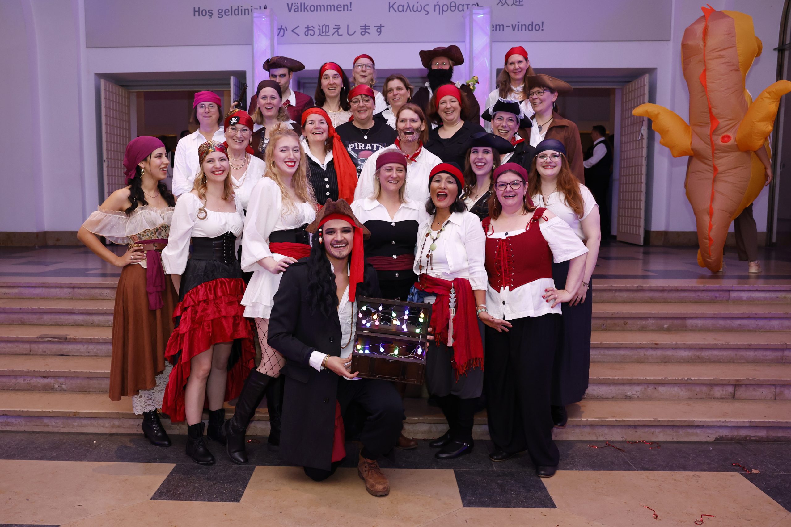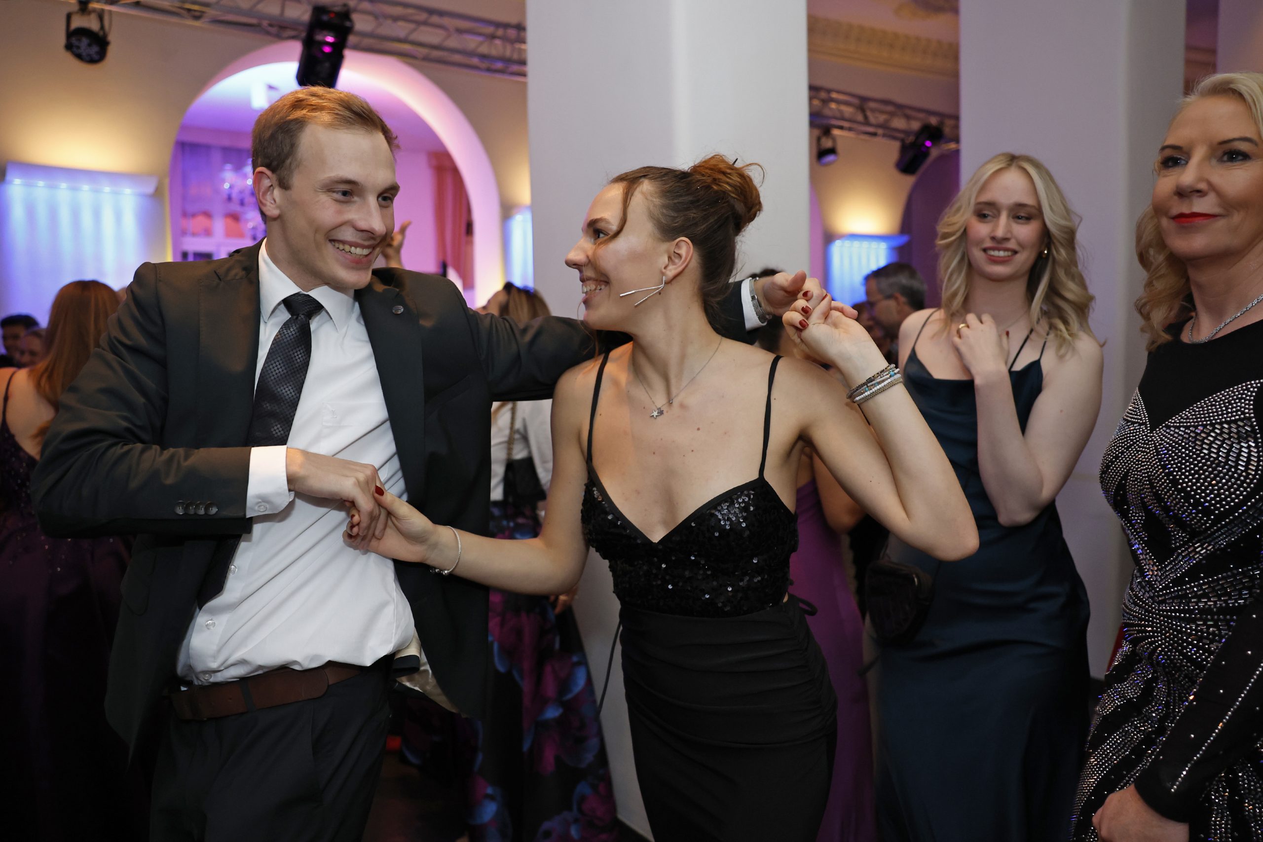 Für die Damen wünschen wir uns ein Abendkleid, einen festlichen Zweiteiler oder einen Jumpsuit. Bitte auch hier keine Turnschuhe/Sneaker, sondern Abendschuhe/Pumps/Tanzschuhe.