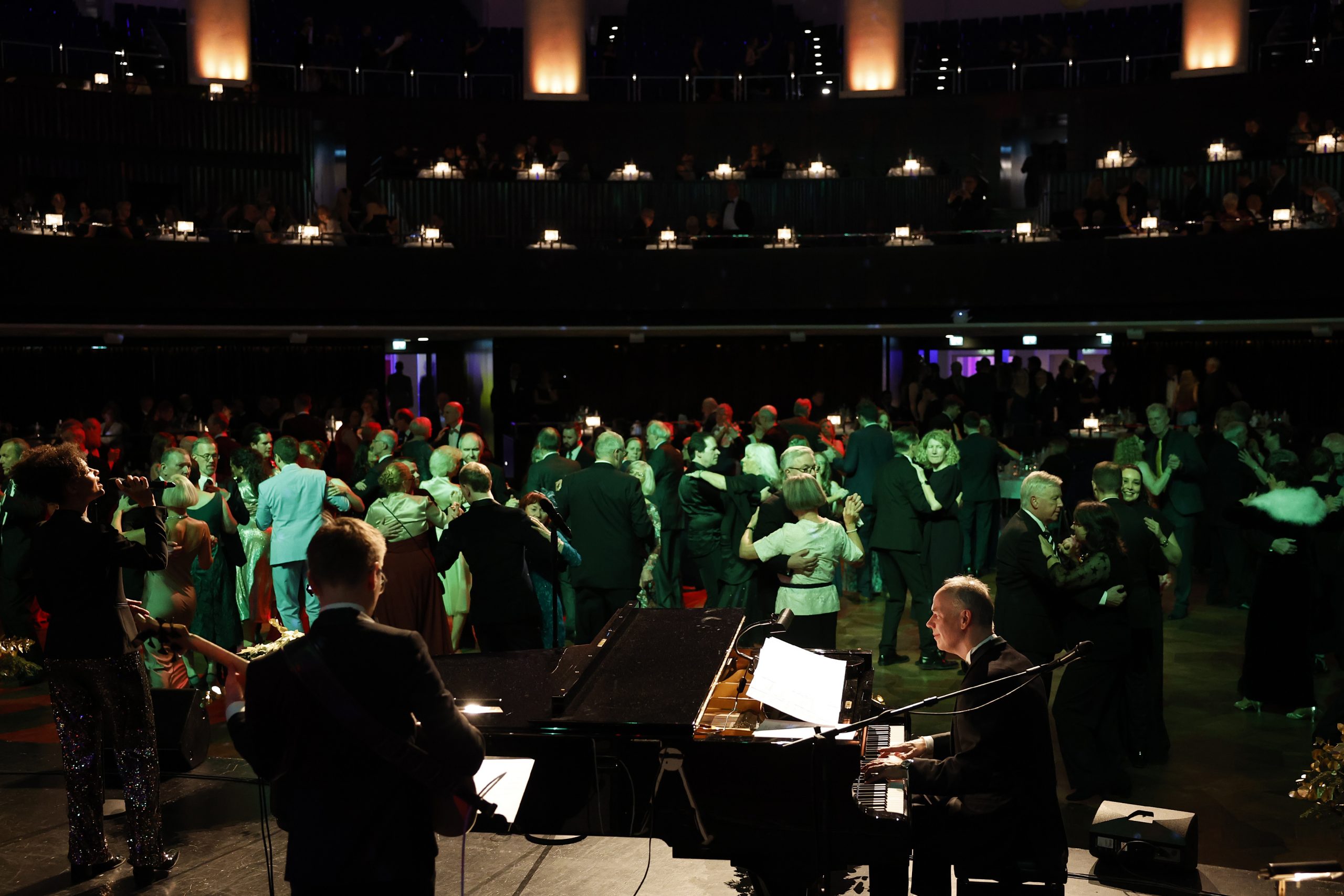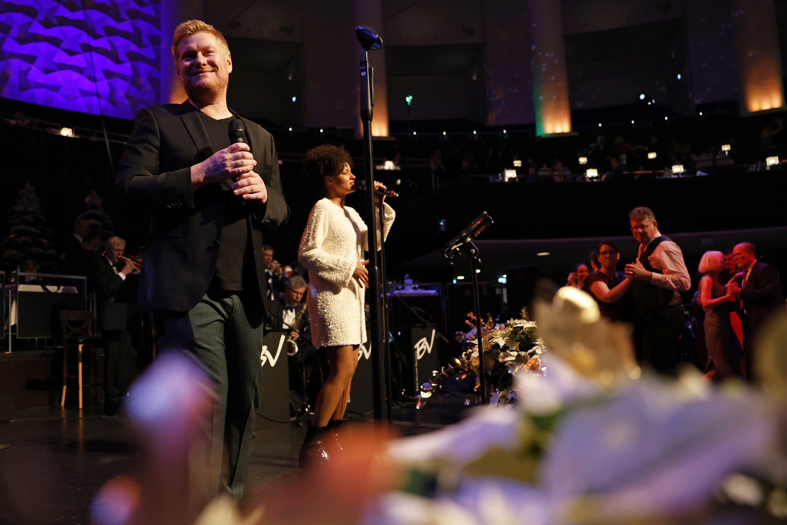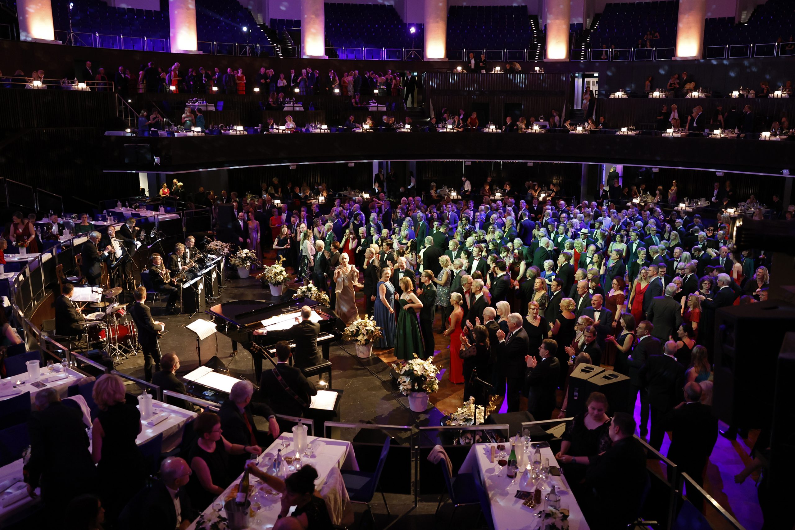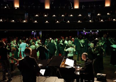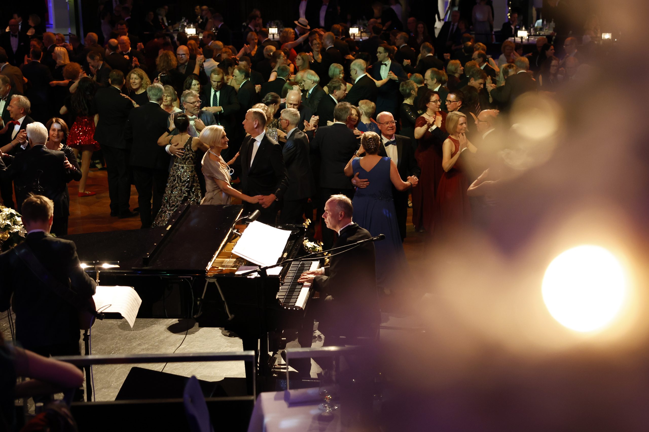 Musikalischer Hochgenuss: Zum ersten Mal sorgt im Ballsaal das 13-köpfige Björn Vüllgraf Orchestra für ausgelassene Stimmung bei allen Tänzern. Mit ihrem breiten Repertoire von klassischen Standardtänzen sowie modernen Lounge-, Soul- und Pop-Arrangements ist musikalische Unterhaltung auf höchstem Niveau garantiert.